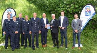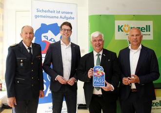 Auch Polizeipräsident Michael Tegethoff unterstrich die hohe Sicherheit in Künzell und lobte die bisherigen Maßnahmen wie zum Beispiel die fünf freiwilligen Polizeihelfer sowie das Sicherheitsportal „Mängelmelder“. Die enge Zusammenarbeit zwischen Kommune, Polizei und Bürgerschaft wird dazu beitragen, passgenaue Maßnahmen für noch mehr Sicherheit vor Ort zu entwickeln. Nachdem auch Landtagsabgeordneter Sebastian Müller die enge Zusammenarbeit zwischen Polizei, Ministerium und Kommunen lobte, übergab Innenminister Roman Poseck das Siegel „KOMPASS“ an Timo Zentgraf.
