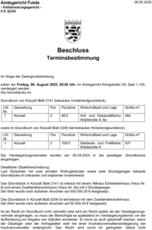Die Versteigerungsvermerke wurden am 05.08.2024 in die jeweiligen Grundbücher eingetragen.