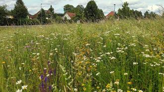 Auf den nachfolgenden Fotos sind die Blumenwiesen am Kreisel zwischen Pilgerzell und Dirlos, am Lärmschutzwall am Ortseingang von Dirlos und an der Ortsmitte in Engelhelms zu sehen.