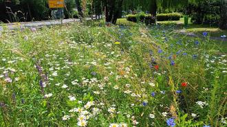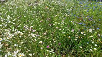 In den nächsten Wochen wird sich das Farbenspiel in den Blühstreifen immer wieder durch neue Blumen verändern, wenn einige Arten nach dem Abblühen wiederum durch später blühende Blumen abgelöst werden. So erwarten den Besucher bis in den Herbst hinein stets neue Blüten. Bei der Blumenwiesenmischung handelt es sich um mehrjährige Sommerblumen.