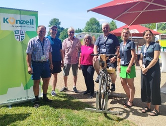 Letzte Woche präsentierte sich die Gemeinde Künzell an zwei Tagen auf der Landesgartenschau Fulda. Der attraktive Informationsstand rund um die Initiativen und Angebote der sympathischen Gemeinde lockte besonders in den noch kühleren Morgenstunden die Besucher am Aueweiher (Wassergarten), neben dem Himmelszelt an. Mit dabei, Bürgermeister Timo Zentgraf, der es sich nicht nehmen ließ, die Standbetreuung zusammen mit der Auszubildenden Rica Rimmel, Marketing-Mitarbeiterin Sabine Räth und Susanne Flamme-Brüne vom Treffpunkt Mitte zu übernehmen. "Künzell hat so viel zu bieten und das möchten wir den Besuchern von nah und fern hier vermitteln", so Zentgraf. "Wir präsentieren zum einen unser Engagement für den Naturschutz und stellen unsere 'grüne Lunge', den Grezzbachpark mit all seinen Attraktionen vor", so Zentgraf weiter.