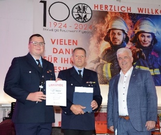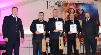 Julian Vogler und Fabian Storch (FF Dietershausen) erhielten für die Teilnahme an den Kreisleistungswettkämpfen das Leistungsabzeichen in Bronze, Fabian Kömpel (FF Dirlos) das Leistungsabzeichen Gold 5 und Alexander Heil (FF Dietershausen) das Leistungsabzeichen Gold 10.