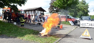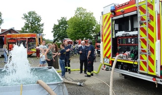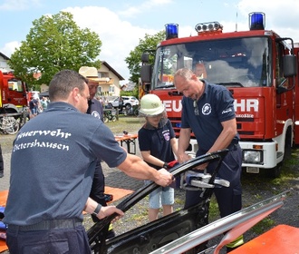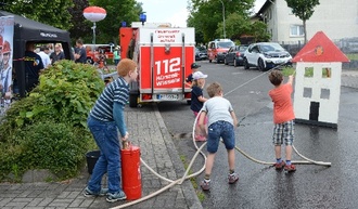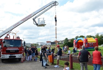 Am Sonntag präsentierten die Feuerwehren der Gemeinde Künzell und das THW im Rahmen einer interaktiven Blaulichtmeile auf dem Festgelände zahlreiche Attraktionen für Groß und Klein. Hierzu gehörten neben der Ausstellung der Einsatzfahrzeuge die Vorführung von hydraulischen Rettungsgeräten und pneumatischen Hebesystemen, der Einsatz von Wasserpumpen und der Waldbrandausrüstung. Mit der Vorführung einer Fettbrandsimulation wurde demonstriert, wie gefährlich dies sein kann. Die Kinder konnten in die Rolle eines Feuerwehrmannes schlüpfen und dabei nicht nur mit einem echten Feuerwehrschlauch auf ein Modell spritzen, sondern auch die Werkzeuge wie Schere und Spreizer in Aktion sehen und selbst bedienen. Ein Highlight war natürlich der Klettermast, an dem viele Kinder ihre Geschicklichkeit testeten.