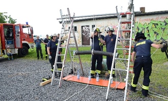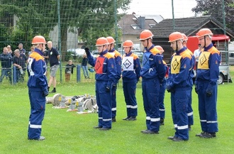 Die Jugendfeuerwehren nahmen einen Löschangriff nach FWDV 3 vor, absolvierten eine Schlauchstafette und legten verschiedene Knoten an.
