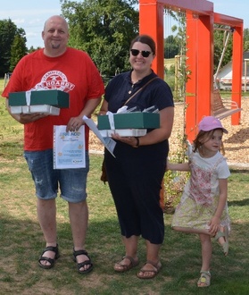 Ein weiterer Höhepunkt war die Bekanntgabe der Gewinner des Namenswettbewerbs: Aus 37 Einsendungen wählte der Ortsbeirat Dirlos den Namen „Schaukelgarten Hauneschwung“. Die Ideengeber Rebecca mit ihrer Tochter Olivia Heil, Thomas Schäfer und Thomas Groß wurden durch Sabine Räth von der Gemeinde Künzell geehrt. Nach der feierlichen Segnung durch Pfarrer Dr. Innocent Oyibo und dem symbolischen Banddurchschnitt wurde der Platz offiziell eröffnet – mit kühlen Getränken, kleinen Köstlichkeiten und natürlich der ersten Schwungprobe auf den neuen Schaukeln.