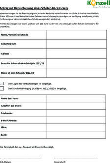 Antrag auf Bezuschussung eines Schüler-Jahrestickets