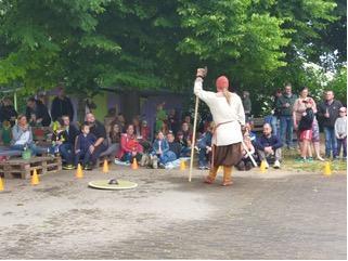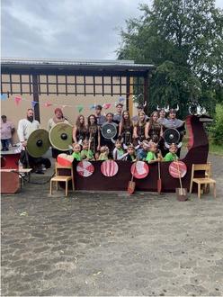 Das Sommerfest stand unter dem Motto „Wikinger“. Bereits im Vorhinein erfuhren die Kinder spannende Geschichten über die tapferen Männer und ihre Familien. Für das Fest lernten die Kinder Lieder über den Mut und die Stärke der Wikinger. Selbst gebaute Boote dekorierten die Schneckenwiese. Besonders schön war der Tanz der Tanzgruppe „Schlawiner“ der Freiwilligen Feuerwehr Bachrain. Ein Kindergarten-Papa und sein Kollege überzeugten mit einem „echten“ Showkampf. Es war ein tolles Fest. Danke an alle Helfer.