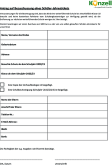 Antrag auf Bezuschussung eines Schüler-Jahrestickets