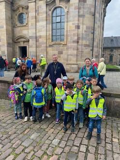Der Abschiedsausflug der diesjährigen Vorschulkinder der Kita Schneckenhaus in Künzell-Bachrain ging in diesem Jahr nach Fulda. Die Kinder beschäftige nämlich die Frage, ob es neben Bischof St. Martin und Bischof Nikolaus auch einen „echten“ Bischof in Fulda gibt. Groß war die Freude, als die Kinder auf dem Domplatz tatsächlich Bischof Michael Gerber trafen. Voller Stolz über das beeindruckende Treffen, stärkten sie sich anschließend mit einem Picknick auf dem Domplatz. Die Überraschungen gingen weiter, als am Nachmittag ein individuell gestalteter Spieltisch aus einer Kabelrolle von den Kindern und deren Eltern an die Einrichtung überreicht wurde.