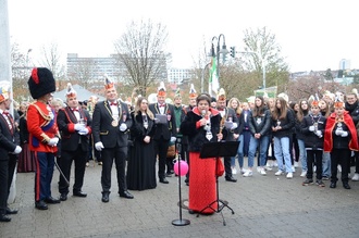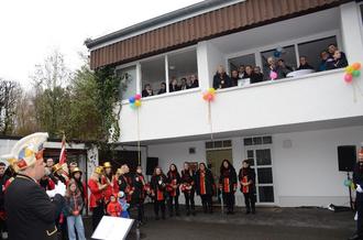 Zahlreiche Karnevalisten hatte der Geselligkeitsvereins Künzell (GVK) eingeladen, um traditionell das Künzeller Rathaus zu erstürmen. Gemeinsam mit den befreundeten Vereinen aus Engelhelms, Bachrain, Dirlos, Neuhof sowie dem Fuldaer Prinzen samt Gefolge schlängelte sich ein bunter Lindwurm, gestartet am Gemeindezentrum, durch die Straßen von Künzell. Vor dem Rathaus wurde die Gruppe von Bürgermeister Timo Zentgraf, Mitarbeitern der Verwaltung, dem Gemeindevorstand, der Gemeindevertretung und einigen Künzeller Ortsvorstehern empfangen. Sie alle hatten sich mit der Gemeindekasse auf dem Balkon der ehemaligen Hausmeisterwohnung neben dem Rathaus verschanzt.