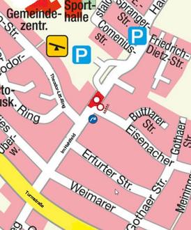 zwischen der Einmündung Eisenacher Straße und der oberen Ein- und Ausfahrt Gemeindezentrum voll gesperrt.