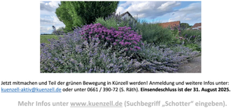 Die Gemeinde Künzell ruft alle Bürgerinnen und Bürger mit Schotter- oder Kiesgärten auf: