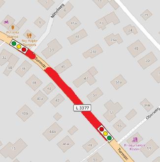 Aufgrund Instandsetzungsmaßnahmen der Deckschicht wird die L 3377 (Turmstraße) in der Ortslage von Künzell auf dem Abschnitt zwischen der Turmstraße, Höhe Hs-Nr. 37 bis Hs-Nr. 44