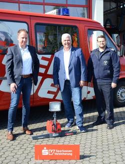 Dieses konnte die Gemeinde Künzell durch Bürgermeister Timo Zentgraf und Gemeindebrandinspektor Jason Freeman am Dienstag, 08.08.2023 kostenfrei im Wert von ca. 1.100 EUR durch Herrn Amend (Foto links) von der SV Sparkassen Versicherung in Empfang nehmen.