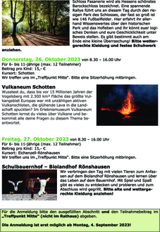 Sie erhalten vor Beginn der Ferienaktivwoche eine Mail mit Informationen zu den einzelnen Veranstaltungen.