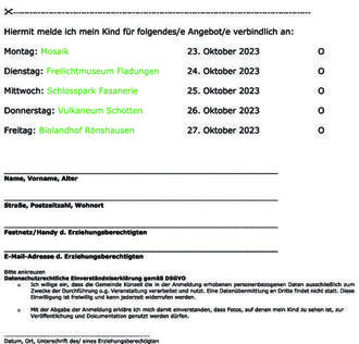 Für die Anmeldung bitte den ausgefüllten Abschnitt und den Teilnahmebeitrag im „Treffpunkt Mitte“ (nicht im Rathaus) abgeben.