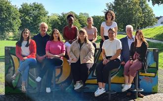 Von links: Jaqueline Targil (Kiga Zwergenland), Leander Mehler (Amtsleiter), Milena Jahn (Verwaltung), Benedictine Nathalie Sira Sebastinie (Kiga Gänseblümchen), Samira Kammel (Kiga Wolkenland), Marlene Franz (Kiga Gänseblümchen), Maura Arndt (Verwaltung), Saskia Koobs (Kiga Zauberwald), Timo Zentgraf und Lara Leinweber (Kiga Wolkenland). Es fehlt FOS-Praktikant Luca Pranzl.