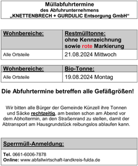 Wir bitten alle Bürger der Gemeinde Künzell ihre Tonnen