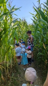 Der erlebnisreiche Vormittag startete mit einer freundlichen Begrüßung durch Julia Wehner-Kimpel. Dann ging es in kleinen Gruppen in´s riesengroße Maislabyrinth auf der Suche nach den dort versteckten Tierbildern. Die Kinder freuten sich darauf, welche Tiere sie in diesem Jahr entdecken und ob sie es schaffen, alle sechs Tierbilder zu finden.