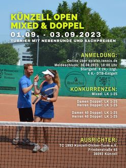 Der Tennisclub Künzell-DICKER TURM würde sich über die Anmeldungen weiterer Tennispaarungen freuen.