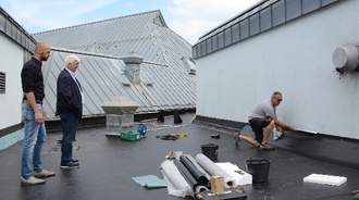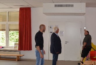 Installation neuer Tontechnik und Dachreparaturen am Gemeindezentrum, Umbauarbeiten am Bauhof, Installation dezentraler Lüftungsanlagen und Erneuerung der Beleuchtungskörper im Kindergarten Gänseblümchen
