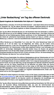 Rasdorf/Geisa. „KulturSpur. Ein Fall für den Denkmalschutz“ - unter diesem Motto wird am Sonntag, 11. September der „Tag des offenen Denkmals durchgeführt. Traditionell beteiligt sich die Point Alpha Stiftung mit zwei Spezial-Angeboten an diesem außergewöhnlichen Kulturevent.