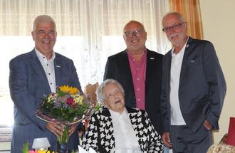 Von links: Bürgermeister Timo Zentgraf, Ortsvorsteher Eugen Heidelmeier und Kreisbeigeordneter Joachim Janshen gratulierten Luzia Jacobi zum 104. Geburtstag.