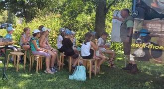 Zur Wochenmitte konnten sich die Kinder im Takka-Tukka-Abenteuerland austoben, bevor Michael Kirse am Donnerstag erneut mit seinem RUMpel-Mobil die Ferienfreizeit besuchte. Diesmal stand die Sauberkeit des Wassers im Grezzbachpark im Mittelpunkt. Die Kinder wurden zu kleinen Forschern und lernten spielerisch viel über heimische Tiere und deren Lebensgewohnheiten. Am letzten Tag der Woche führte der Malteser Hilfsdienst einen lehrreichen Workshop zum Thema „Abenteuer Helfen“ durch. In diesem konnten die Kinder die spannende Welt der Notfallrettung entdecken und auch die Handhabung von Wundschnellverbänden und das Absetzen eines Notrufs erlernen.