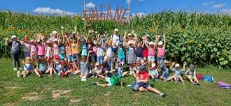 des Maislabyrinths stand den Kindern exklusiv zur Verfügung. Zum Abschluss des Tages durften sich die Kinder im Rasensprenger abkühlen. Der Freitag bot erneut Raum für Kreativität: Die Kinder bemalten Leinwände mit Schablonen und Acrylfarben.