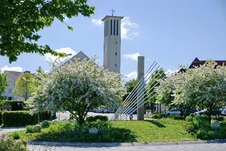 Bachrainer Kreisel mit kath. Kirche
