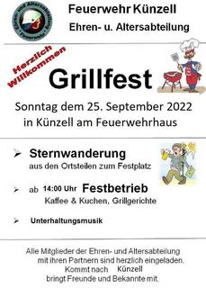 Ehren- und Altersabteilung der Feuerwehr Künzell - Einladung zum Grillfest