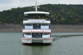 Die Zuwegung zum Schiffsanleger war sehr anstrengend, da die Talsperre sehr wenig Wasser hatte. Nach der zweistündigen Schifffahrt führte uns die Fahrt mit dem Bus durch den Knüllwald nach Aua in den Landgasthof Hess. Hier erwartete uns ein hervorragendes Abendessen.