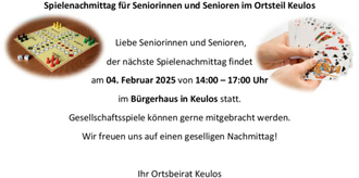 Spielenachmittag für Seniorinnen und Senioren im Ortsteil Keulos