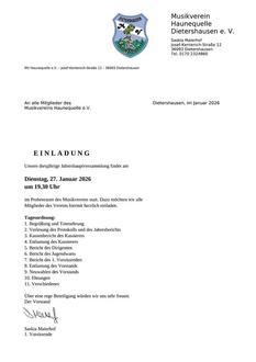 Jahreshauptversammlung des Musikvereins Haunequelle Dietershausen - Termin wurde verschoben und wird rechtzeitig bekannt gegeben