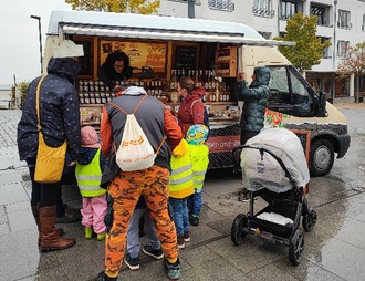 Am 14. Oktober 2022 fand auf dem Platz „Neue Mitte“ ein Erntedankfest statt. Trotz regnerischem Wetter kamen viele Besucher, um die vielfältigen Angebote und Produkte aus der Region zu erleben. Auch die Kita Schneckenhaus war vor Ort und probierte anschließend im Kindergarten die regionalen Produkte. Der nächste Künzeller Bauernmarkt findet am Freitag, 11.11.22 von 9 bis 13 Uhr statt.