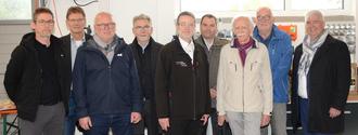 Von links: Technischer Betriebsleiter Stephan Hahn, Kaufmännischer Betriebsleiter Jürgen Aschenbrücker, Eugen Heidelmeier, stellv. Verbandsvorsitzender Martin Heun, Winfried Kram, Vorstandsmitglied Ralf Jost, Thomas Grünkorn, Uwe Grewing sowie Verbandsvorsitzender und Bürgermeister Timo Zentgraf
