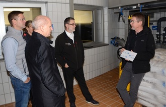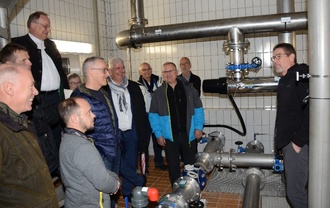 Anschließend führten Stephan Hahn und seine Mitarbeiter die Gäste durch das Betriebsgebäude und den angrenzenden Hochbehälter. Sie informierten diese dabei über das Versorgungsgebiet und die damit verbundenen vielfältigen Aufgaben- und Tätigkeitsbereiche des Zweckverbandes.