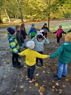 Ein Besuch des Parks von Schloss Fasanerie stand am nächsten Tag auf dem Programm. Bei strahlendem Herbstwetter ging es mit den Kindern nach Eichenzell. Dort wurden sie herzlich von der Museumspädagogin Elise empfangen, die eine aufregende Rallye durch den Schlosspark vorbereitet hatte. Ziel des besonderen Ausflugs war es, die Kinder in die Rolle von Laufburschen und Laufmädchen des Kursfürsten Wilhelm II zu versetzen und ihnen vielfältige Aufgaben zu stellen. Die Kinder demonstrierten ihre Geschicklichkeit beim Eierlauf und bewiesen ihre Schnelligkeit beim Schubkarrenrennen. Während dieser unterhaltsamen Aktivitäten erhielten sie spannende Einblicke in das Leben am kurfürstlichen Hof und im Schloss. Zum krönenden Abschluss gab es nicht nur einen Schatz im Park zu entdecken, sondern für jedes Kind auch eine Urkunde als „Laufbursche“ oder „Laufmadel“ mit einem echten Siegel als Anerkennung für ihren Eifer und ihre Teilnahme an dieser aufregenden Rallye.