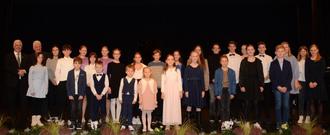 „Ich bin total geflashed“, resümierte Bürgermeister Timo Zentgraf nach dem zweieinhalbstündigen Programm und sprach einen herzlichen Dank an die Musikschulen und an die Musiklehrer*innen aus, die die jungen Talente entdecken und mit viel Geduld und Disziplin fördern. „Wir sind stolz, dass wir in Künzell mit dieser hochwertigen Veranstaltung den Kindern und Jugendlichen eine Bühne bieten.“ Er sprach den Künstler*innen seinen Respekt für den Mut aus und wünschte alles Gute für die musikalische Karriere. Ebenfalls dankte er Sabine Räth von der Künzeller Marketingabteilung für die Organisation der Veranstaltung und dem Musikpädagogen Martin Farnung, dem es auch in diesem Jahr wieder gelungen sei ein hochklassiges Programm zu gestalten.