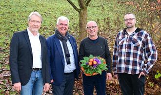 Gemeinsam mit dem Haupt- und Personalamtsleiter Leander Mehler und dem Personalratsvorsitzenden Mathias Krüger wünschte Timo Zentgraf ihm alles Gute für den neuen Lebensabschnitt, vor allen Dingen aber Gesundheit und viel Zeit für die Familie.