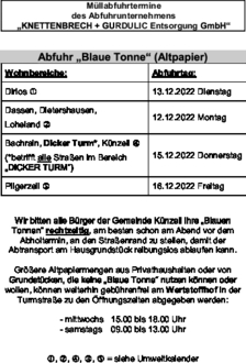 Abfuhr „Blaue Tonne“ (Altpapier)