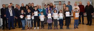 Bürgermeister Timo Zentgraf händigte den erfolgreichen Sportlern die Urkunden und Anstecknadeln des Deutschen Olympischen Sportbundes für überdurchschnittliche und vielseitige persönliche Fitness aus und gratulierte allen Teilnehmern.