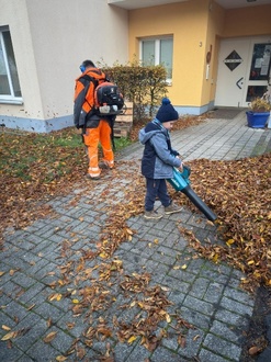 Spontane Laub-Aktion: Geplant war eigentlich eine gemütliche Laubsammel-Aktion mit Erzieherin Frau Schmitt und einem leisen Elektrolaubsauger. Doch als plötzlich die Mitarbeiter des Künzeller Bauhof erschienen und begannen, das Laub „wegzusaugen“, ging alles ganz schnell: Die Kinder stürmten nach draußen und unterstützten begeistert das Bauhof-Team.