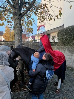 Wie in jedem Jahr gestaltete die Kita den Martinstag mit dem traditionellen Brezelteilen. Nach vielen Geschichten und Liedern rund um St. Martin führten die Kinder gemeinsam mit den Erzieherinnen das Martinsspiel auf. In diesem Jahr gab es eine besondere Premiere: Einen Tanz zum bekannten Earth Song, der daran erinnert, dass Teilen nicht nur unter Menschen wichtig ist, sondern auch im Umgang mit den Ressourcen der Erde. Damit wurde zugleich der Auftakt für das Jahresmotto 2026 gesetzt, das sich verstärkt den Themen Nachhaltigkeit und Ökologie widmet. Anschließend übernahm der engagierte Elternbeirat, der wie jedes Jahr ein Pferd für den Martinszug organisierte und das gemütliche Beisammensein im Franz-von-Sales-Haus hervorragend vorbereitet hatte.
