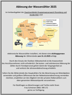 elektronische Wasserzähler installiert, mit denen eine stichtagsgenaue Ablesung der Zählerstände zum 31.12.2025 erfolgt.