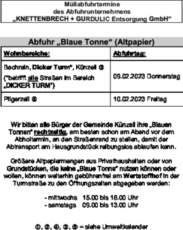 Abfuhr „Blaue Tonne“ (Altpapier)