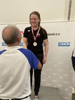 In der Klingenhalle in Solingen glänzte Alicia Link aus Dirlos vom SFD Schwimmsport-Fulda e.V. bei den 38. Deutschen Meisterschaften der Masters. Auf ihrer Paradestrecke, den 1500m Freistil, sicherte sie sich souverän die Bronzemedaille. Ein grandioser Erfolg, der Alicia Link gebührend zusteht.