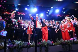 Zum großen Finale der Kostümsitzung erklang der alte Klassiker „In Künzell feiert man bis es hell“, und alle Aktiven kamen noch einmal auf die Bühne. Die GVK Musiktruppe brachte diesen Hit erstmals auf der Kostümsitzung zum Besten, und die komplette Prinzenmannschaft stimmte gesanglich mit ein.
