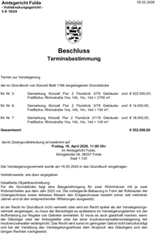 Der Versteigerungsvermerk wurde am 16.05.2024 in das Grundbuch eingetragen.