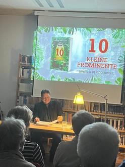 Einen abwechslungsreichen Abend erlebten die Besucherinnen und Besucher der Lesung mit Markus Mattzick, der aus seinem Thriller „10 Kleine Prominente gingen in den Dschungel“ las. Der Autor, der bereits mit seinem dystopischen Roman „Ohne Strom“ zu Gast in der Bibliothek Lahnau war, überzeugte auch an diesem Abend mit einer spannenden Lesung und fundierter Hintergrundrecherche. Abgerundet wurde die Veranstaltung durch ausgewählte musikalische Beiträge. Zum Einstieg überraschte Markus Mattzick sein Publikum mit einem witzigen Bingo, das für gute Laune sorgte und auch „Reality-Show-Neulingen“ einen guten Überblick verschaffte. Mit einem herzlichen Dankeschön und einem Lied beendete er den Abend.